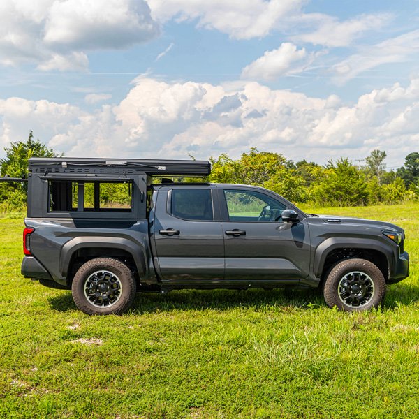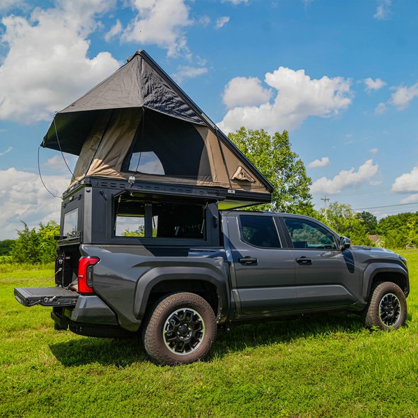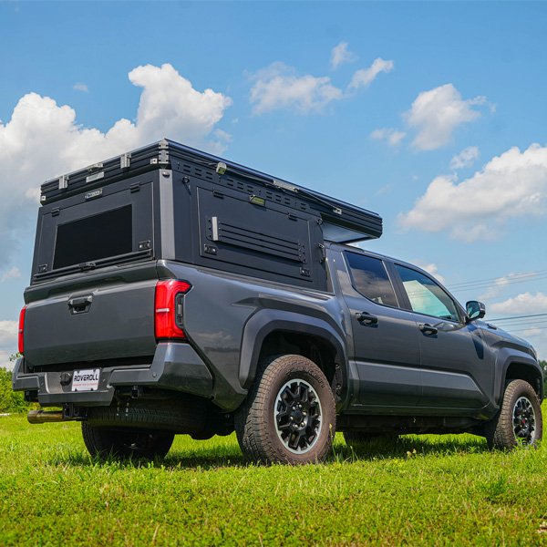 Roveroll’s Skynest Tent Combo is a canopy camper that fits a wide range of trucks from 5 to 6.5 feet in size.