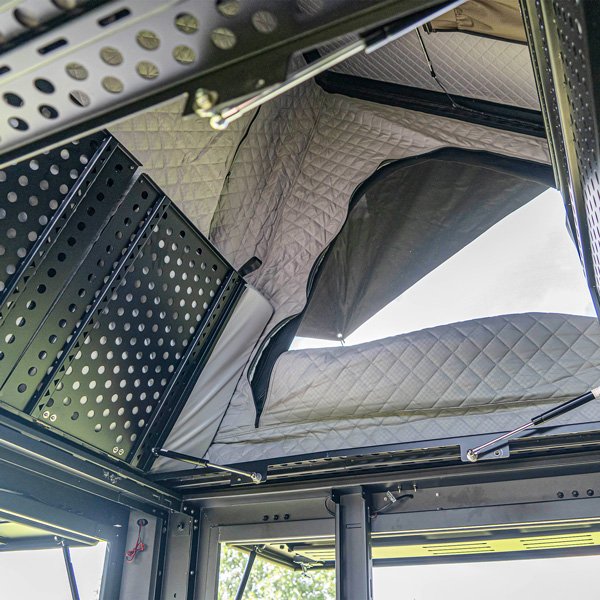 Additional extrusions on the top of the tent can be used for crossbar mounting and solar panel applications.